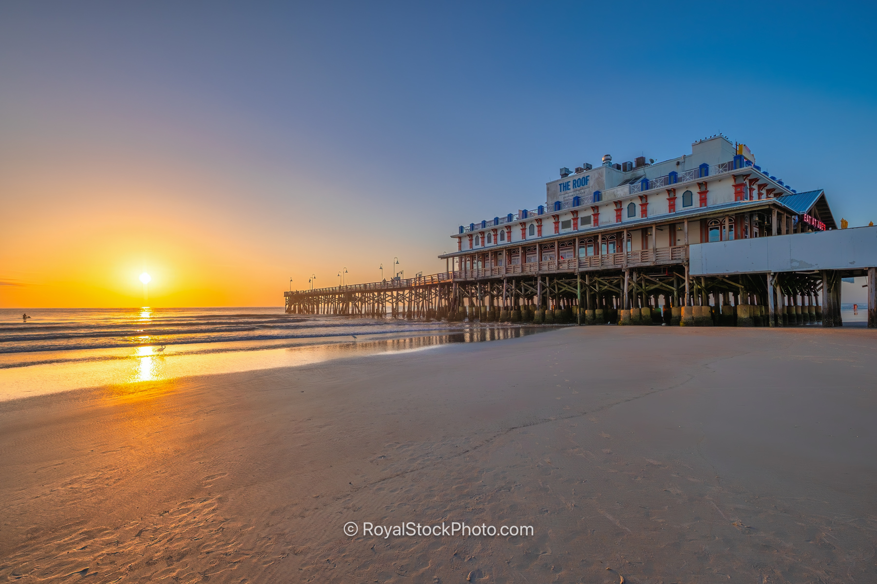 Daytona Beach Pier at sunrise. HDR image created using HDR software and Luminar NEO.